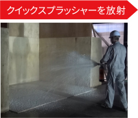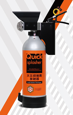 多数の死傷者が発生した京都アニメーション放火火災のようなガソリン等を用いた痛ましい事件は、過去に何度も発生しています。このような悲惨な火災から尊い命を守るため、消防防災メーカーとして何かできないか、そのような強い思いから、今までにない新発想の火災抑制剤放射器「クイックスプラッシャー」を開発しました。